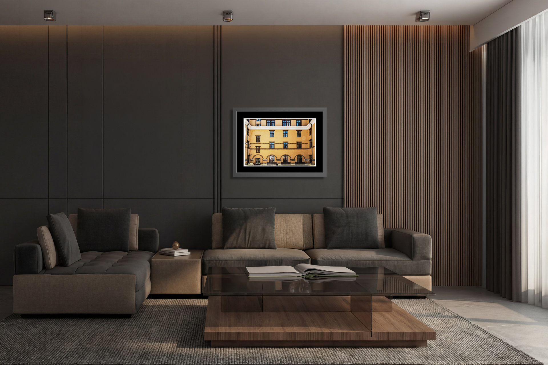 Этот кадр — исследование архитектурного порядка и повторения. Фасад выстроен как система модулей: окна, горизонтальные линии и арки образуют строгую, почти графическую композицию. Пространство воспринимается не как здание, а как структура.